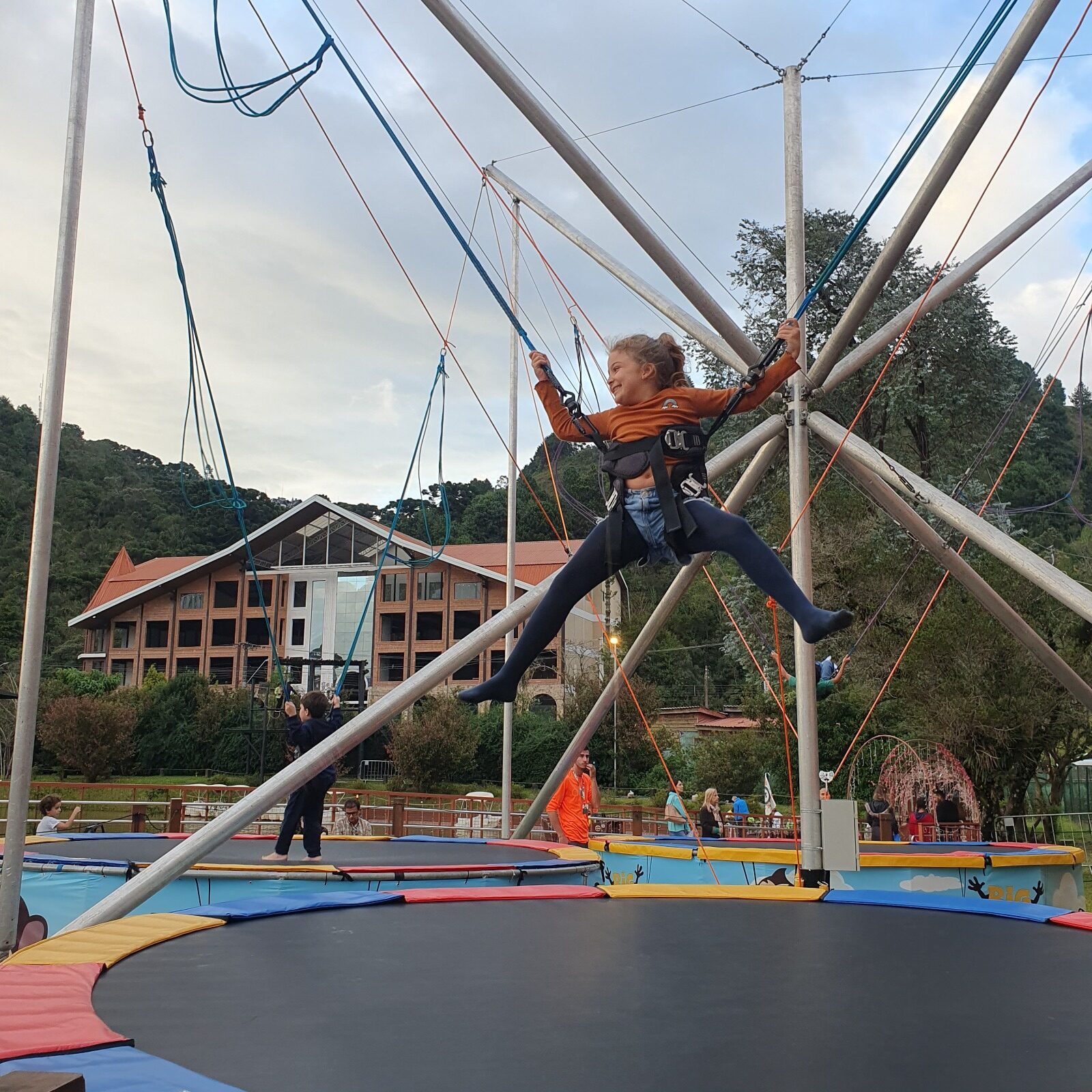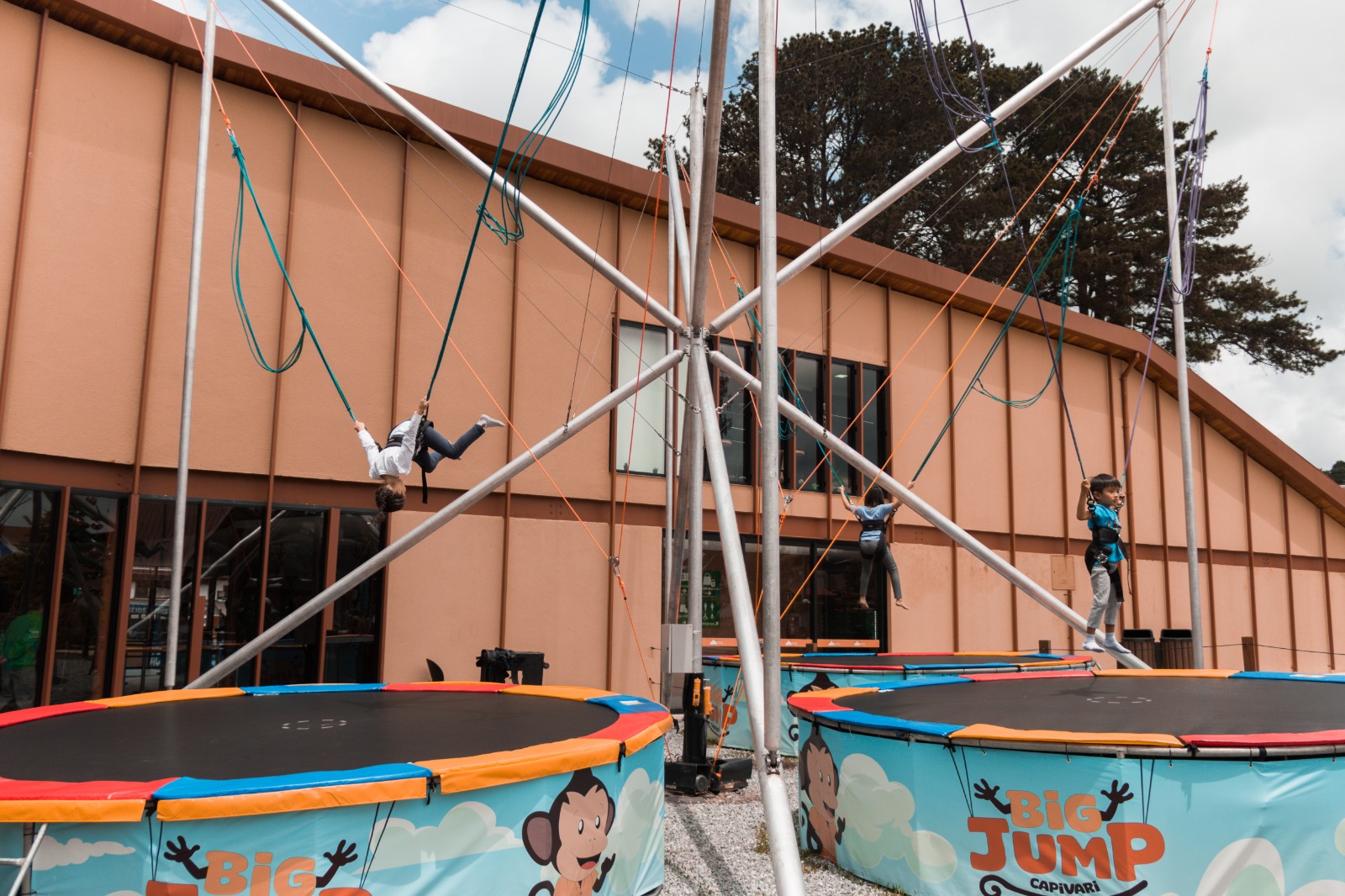 A cada salto, a empolgação toma conta do ar enquanto você desafia a gravidade e se entrega à sensação de liberdade. A estrutura imponente, as cordas de segurança e o vento no rosto criam uma atmosfera única que conquista a todos.